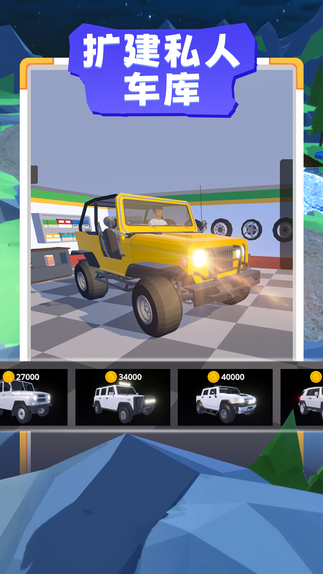 2.各种款式类型的越野型车辆任你挑选,解锁更多高性能的越野车来翻山越岭。