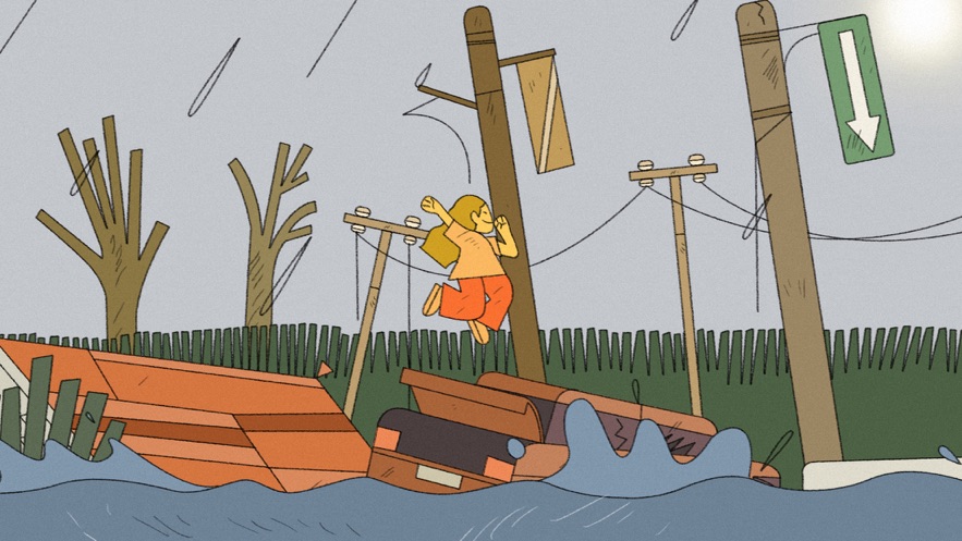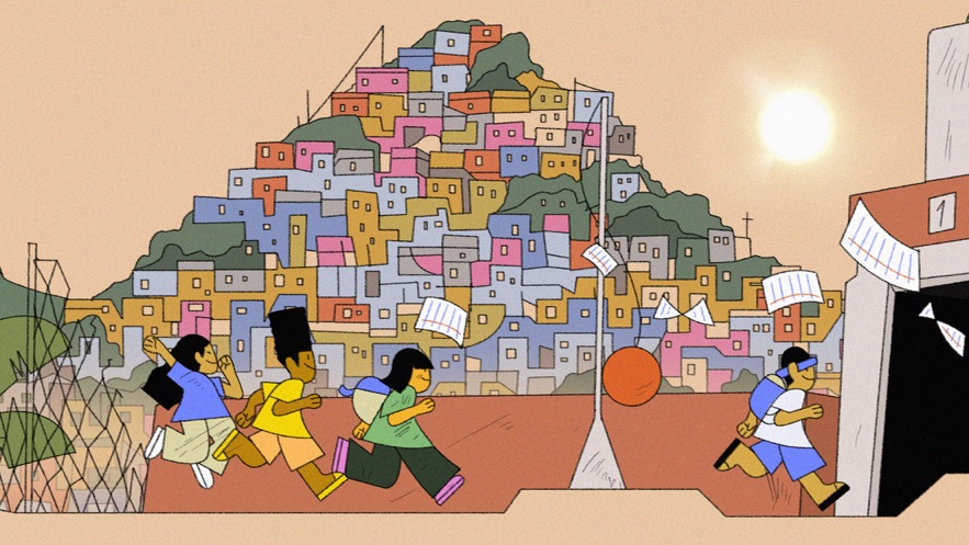 1、卡通漫画风格展现多个不同的地图场景,穿过破旧的贫民区,越过湍急的河流,在危险中坚持前进;
