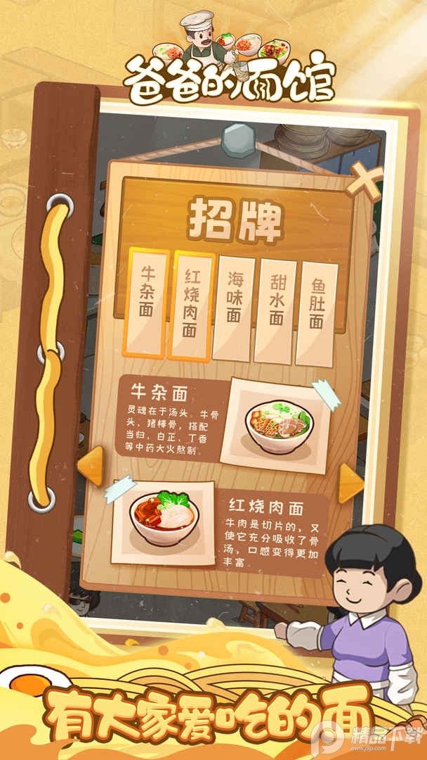 和家族一起经营面馆,解锁更多的面谱,为更多的客人做不同的美食,用更多更好的器具填满你的家。