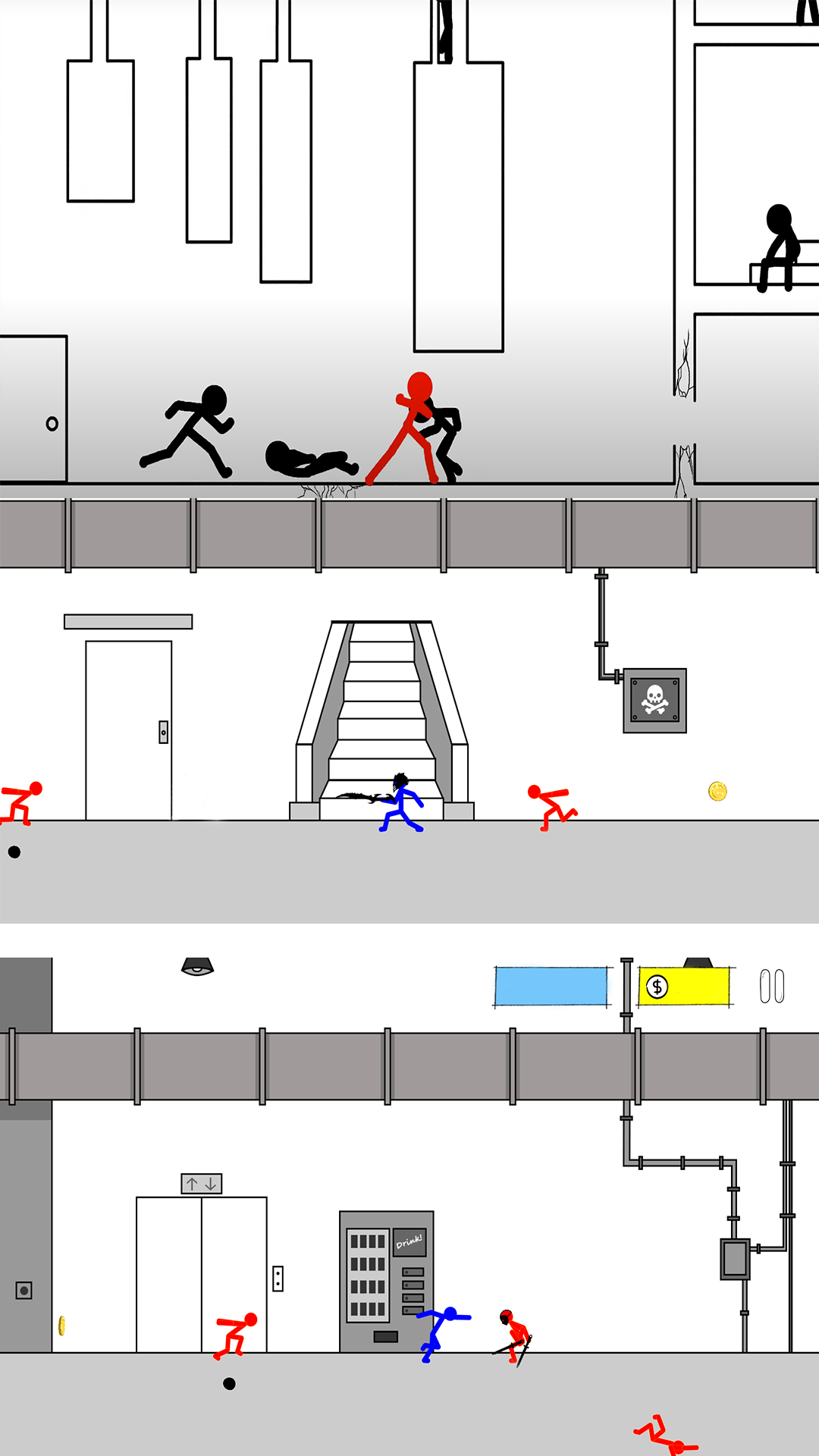 1.一款风格简约的火柴人冒险游戏,操作界面简洁大方,控制自己的火柴人在游戏中自由冒险。