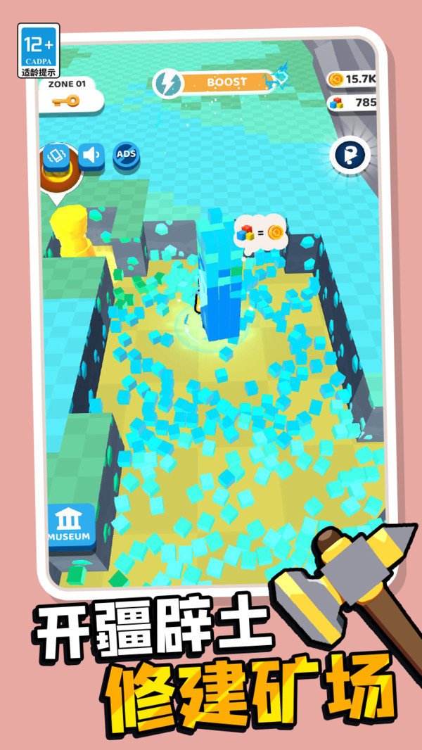 矿工模拟的休闲游戏,借助手中工具创造出更多的财富,在一个全新的世界里体验乐趣。