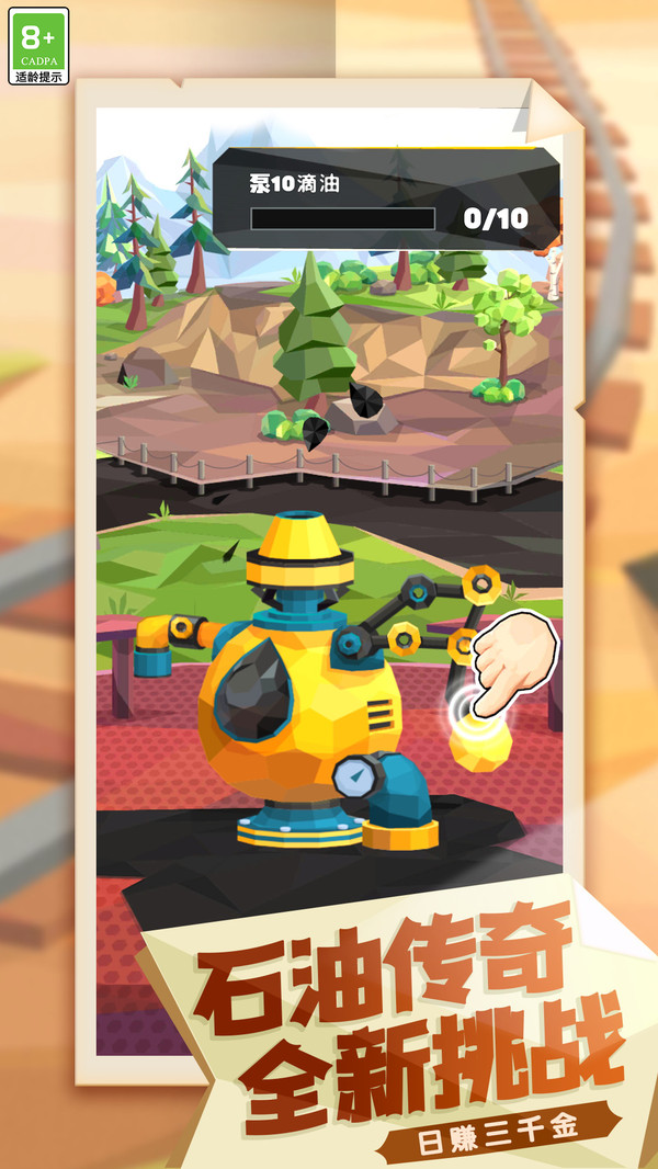 3、轻松休闲的放置玩法,我们只需要用手指点击发出相关的指令就能够让油田工作产油。