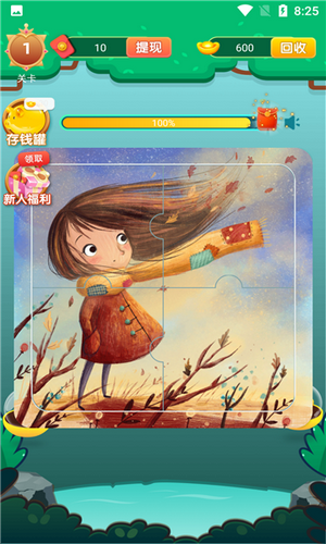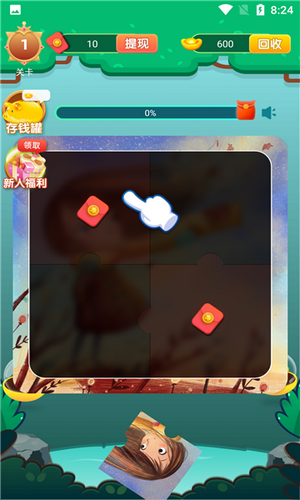 1、完成益智拼图关卡挑战即可领红包,关卡数量非常多。