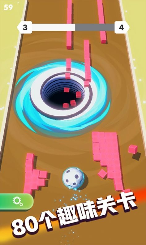 左右移动尽可能的吞噬更多物体才能获得足以通关的分数,80个关卡等待你的挑战,每一个关卡都是全新的设计!