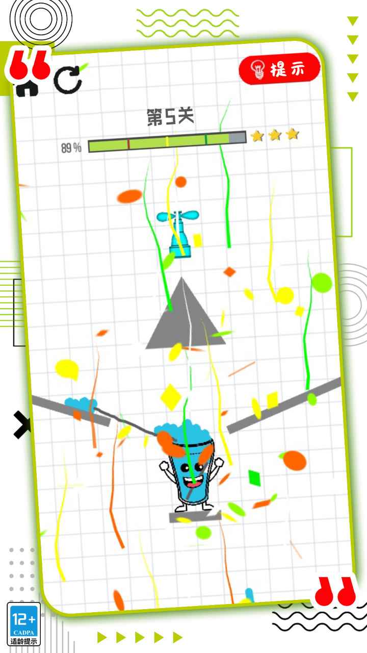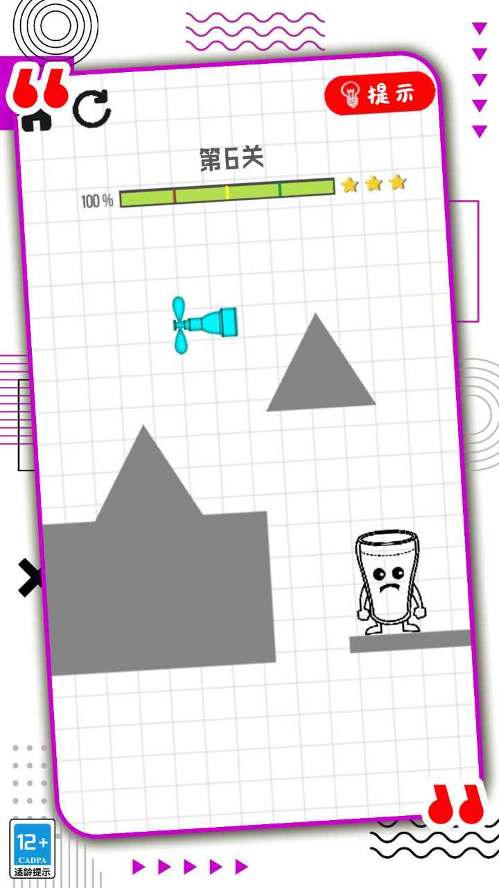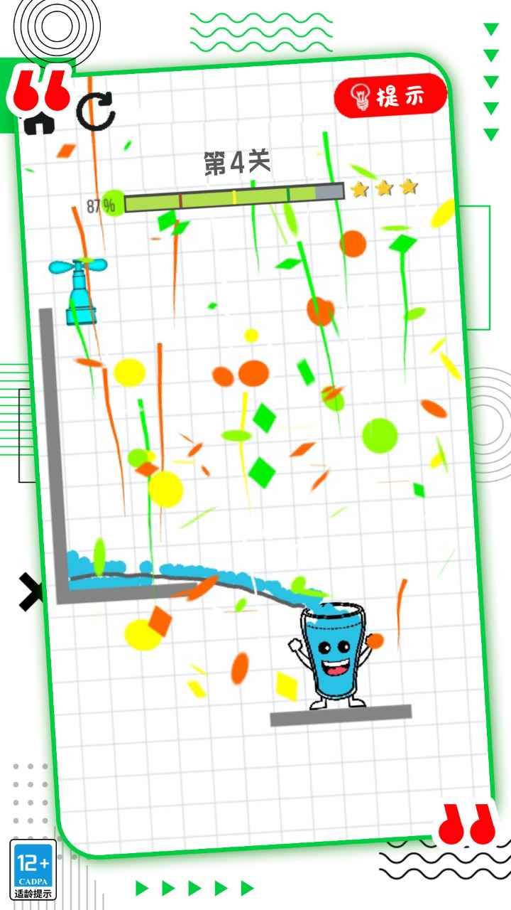 2.动动你的手指将这些线条连接起来让水顺利的流落到杯中闯关成功吧;