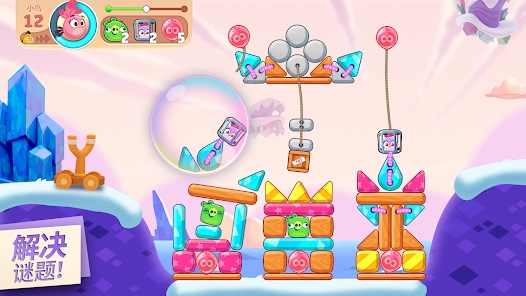 1、使用弹弓弹射小鸟,推倒建筑来解决谜题,并营救可爱的鸟宝宝。