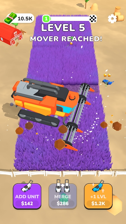 割草与合并是一款很好玩的休闲游戏,这里的游戏模式很多都是相当好玩的,你可以在这里开启各种精彩有趣的玩法,你需要利用各种武器来帮你更快的收割稻草,游戏内的工具很多你可以自由的选择,每个工具的技能都是不一样的,你需要熟练工具帮你更快的闯关成功,赶紧来下载试试吧。