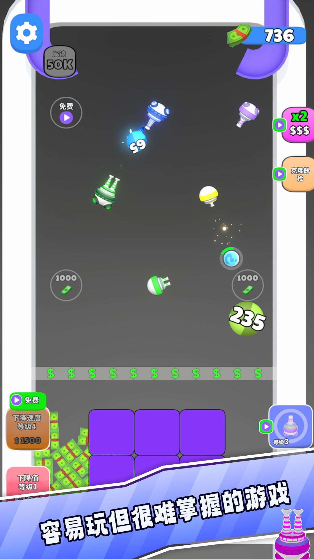 1.不同的操作方式,完成独特的球球弹射,畅享着这个过程;