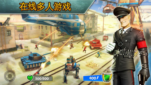 闪电部队是一款非常刺激的枪战类游戏,玩家可以在这里面选择大量的兵种来进行战斗,所有的游戏画面也是无比的真实,大量的武器和炫酷的枪械来进行使用的,所有的玩法都是十分的经典,可以在里面驾驶飞机或者坦克来进行冒险闯关,从而让自己快速的去完成里面的任务,领取大量的游戏奖励,画面也是非常的真实。