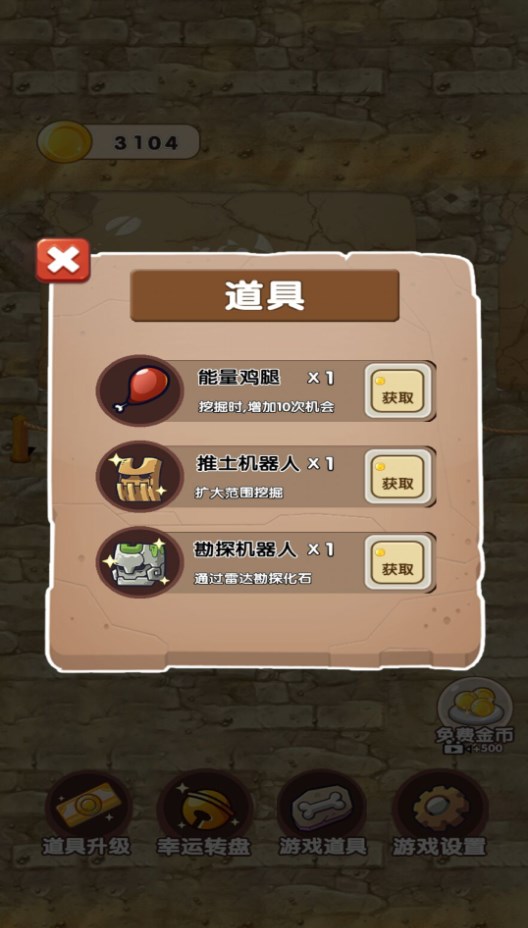 3、慢慢提高发现宝藏的能力,用一些体积更新自己的专用工具和机械设备。