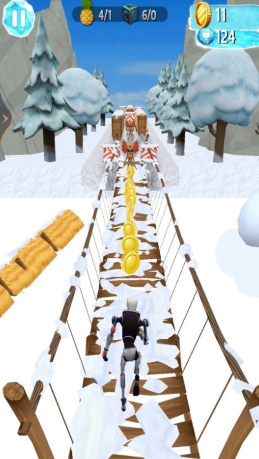 3、操作角色不断的奔跑冲刺其中,灵活的躲避各种的障碍,收集超多的道具。