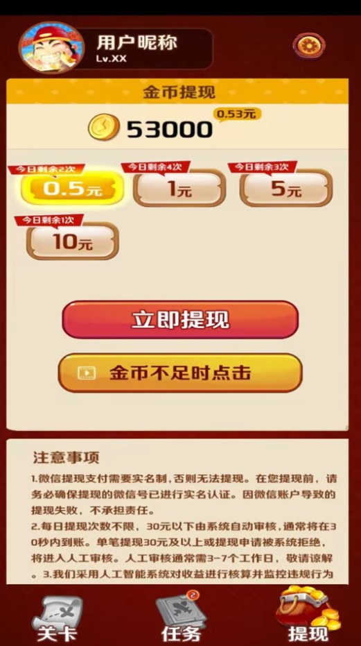 答题多赚宝是一款超级有趣的答题闯关游戏,我们将会在游戏当中去进行着一场超级刺激的答题挑战,这款答题活动是非常的考验我们的智商储备量的,一定要很好的把游戏当中的各种题目全部都很好的去解答出来哦,这样才能够去收获超级多的游戏奖励,各种各样的关卡等着我们去全部都解锁出来。