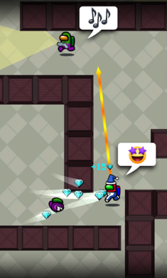 1.玩家将和其他的玩家一起在飞船上展开一场混乱的战斗,一边分辨真假对手,一边展开射击。