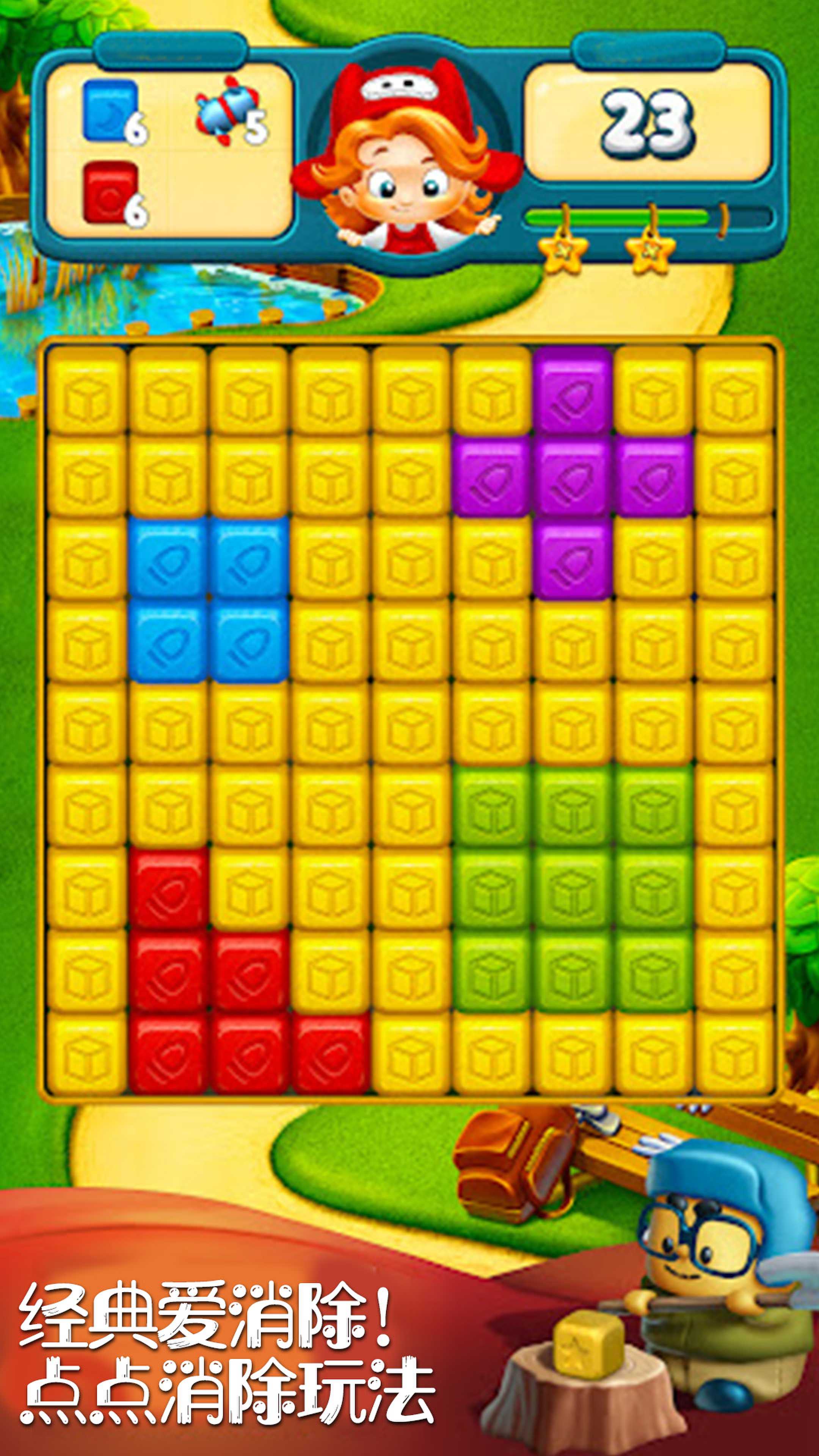 2、匹配相同颜色的方块,同时巧妙使用强化道具,引发大爆炸,轻而易举通关问鼎!
