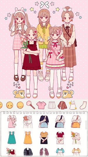 通过装扮发型,衣服,配饰等多种类别打扮出一个漂亮可爱的卡通美少女。每一种配饰都准备了几十种可供选择,自由度超高哦!