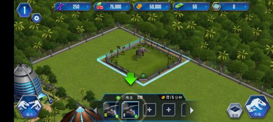 2、建筑物:各式各样的建筑物是玩家获取金币的主要来源,玩家可通过添置建筑物获得更多金币,也可长按建筑物将其移动到其他位置。不过,小编建议随着玩家等级的提升,可选择售卖一些落后建筑物,毕竟侏罗纪公园的发展也需要更新换代。