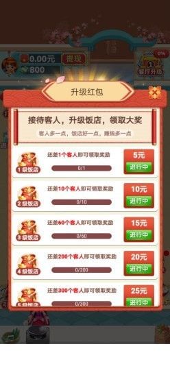 1、快乐餐厅红包版是一款可以领取超多红包的餐厅经营养成类的小游戏,其中会带给玩家非常多简单的玩法挑战。