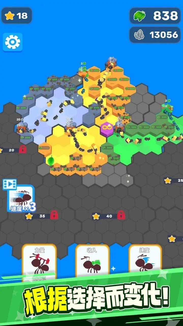 3、蚁群数量代表王国兴衰,您必须繁育不同功能的蚁群,带领他们抵御外敌。