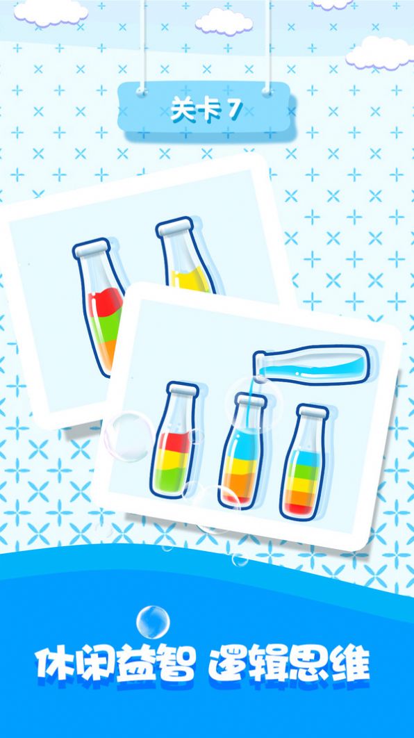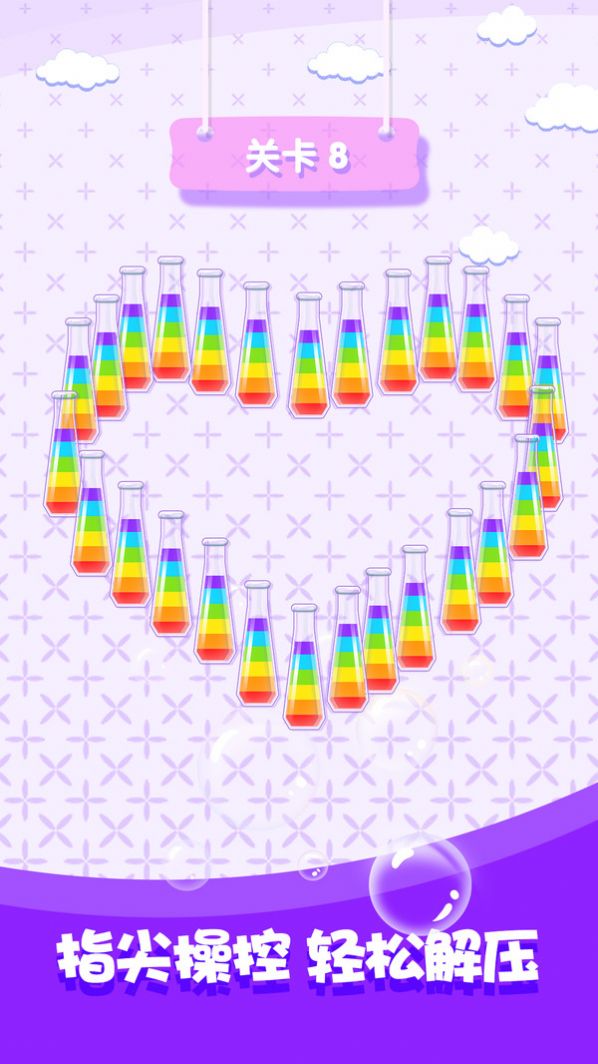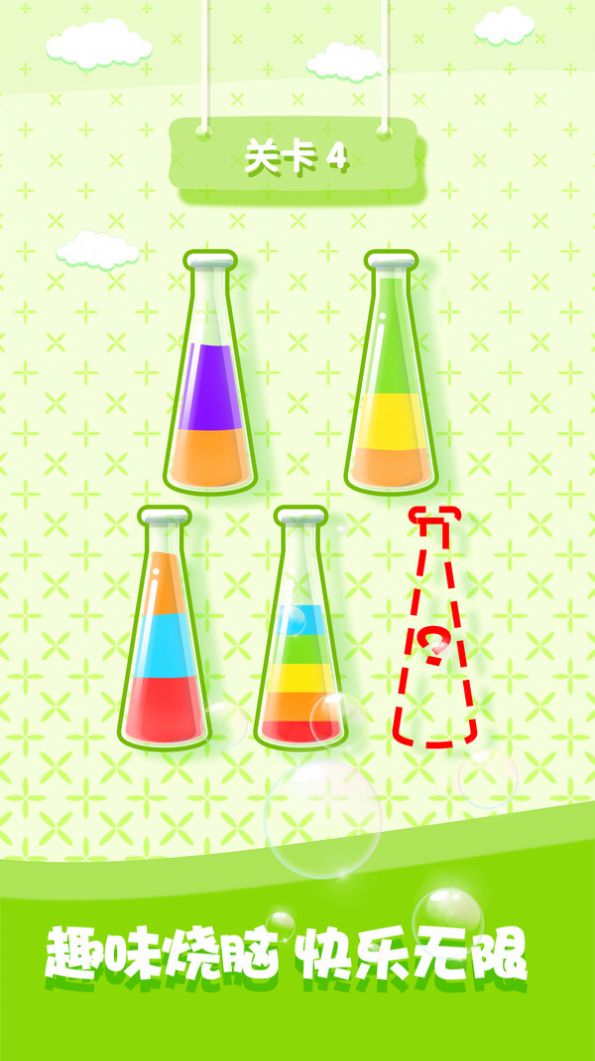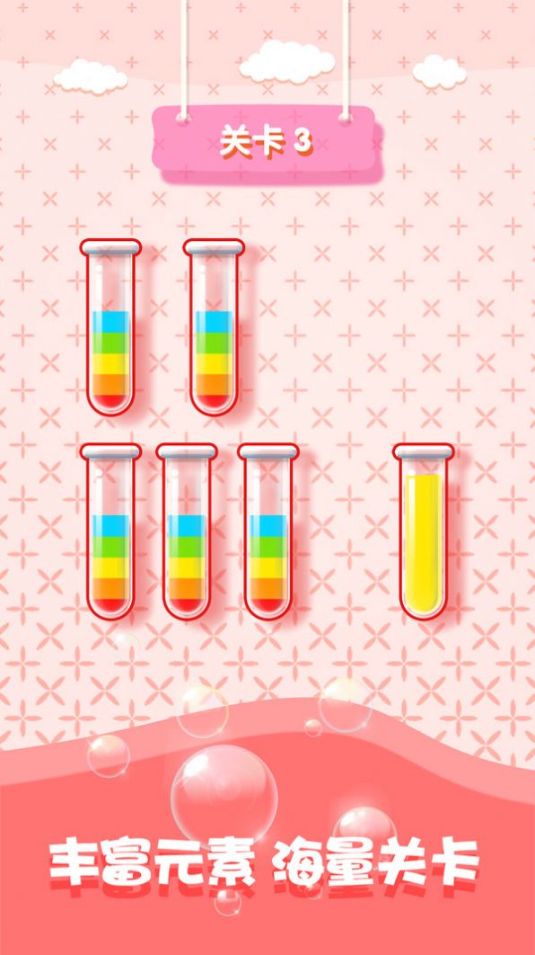 2.整个游戏的操作就是点击,在这玩的时候将这些不同颜色的液体分类即可;
