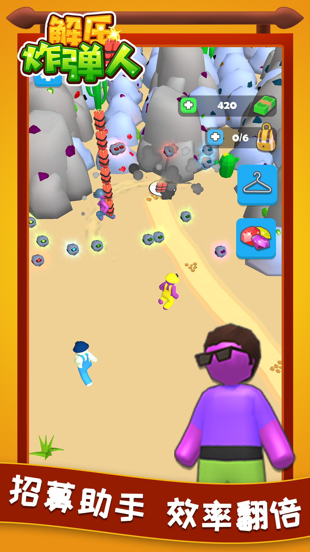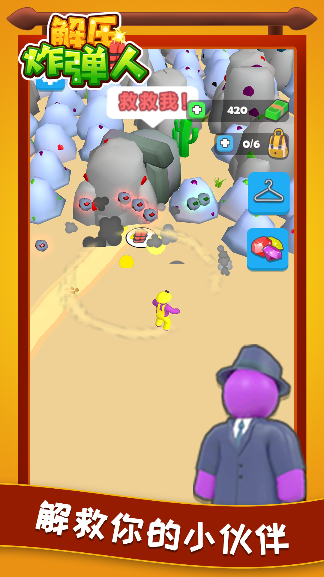 解压炸弹人是一款非常解压的手机游戏,玩家要在这里扮演一位能够放置炸弹的游戏角色,在这里玩家们需要通过各种的任务关卡设计,玩家需要解救各种被困的人员,放置炸弹顺利的将他们救出来,游戏拥有非常休闲的3D画风,玩起来非常的解压过瘾,是一款值得入手下载的游戏。