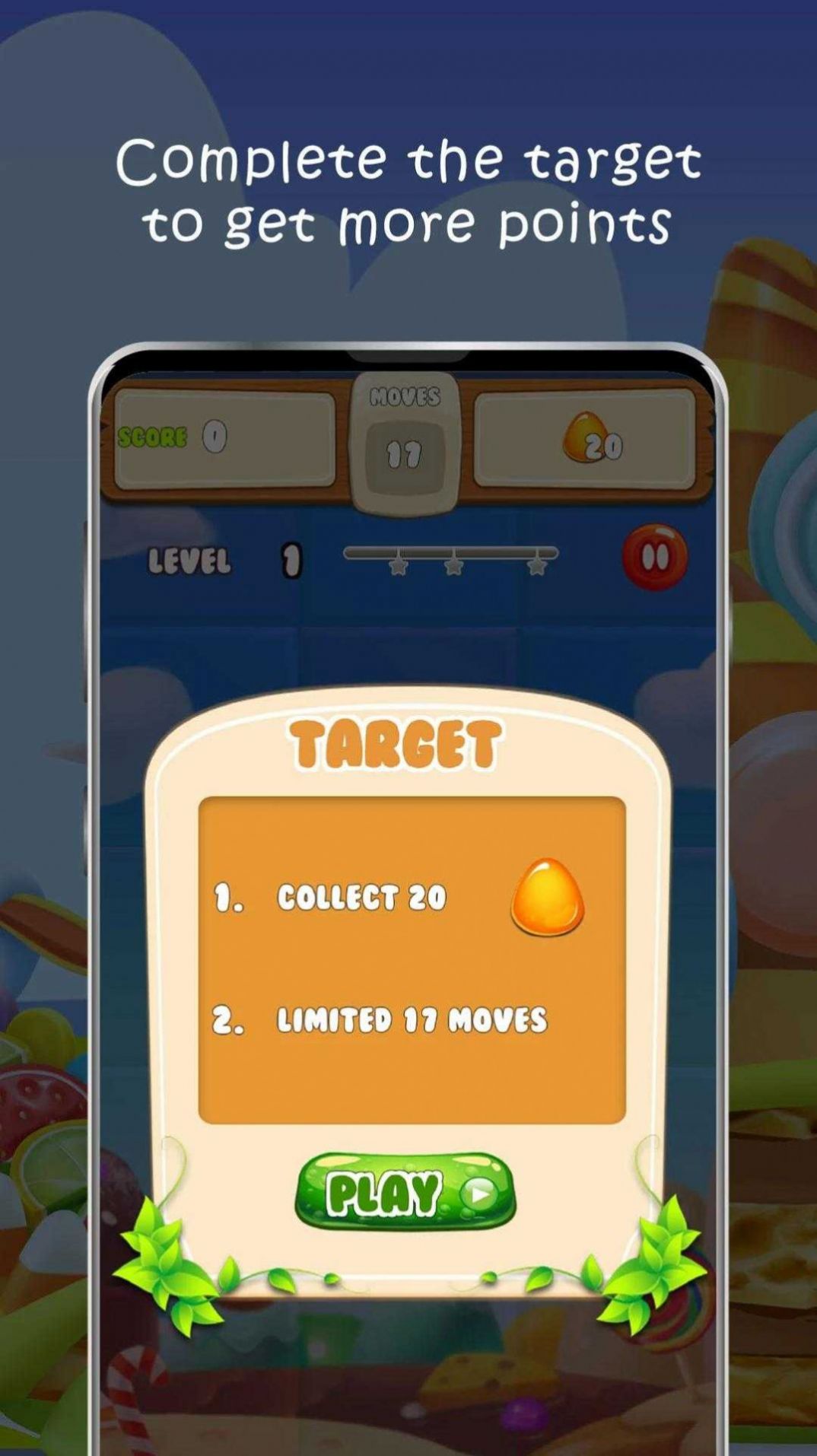 2、游戏画面绚丽多彩,糖果造型可爱诱人,音效清脆甜美;