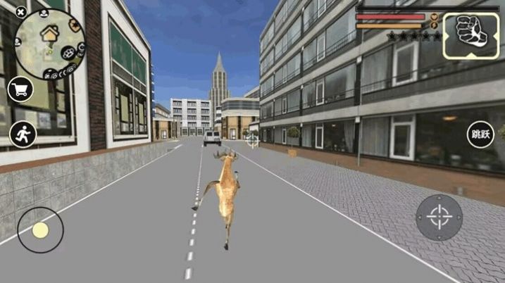 操控小鹿在道路中为所欲为,搞各种破坏引来很多其它动物一起互动追击等等;