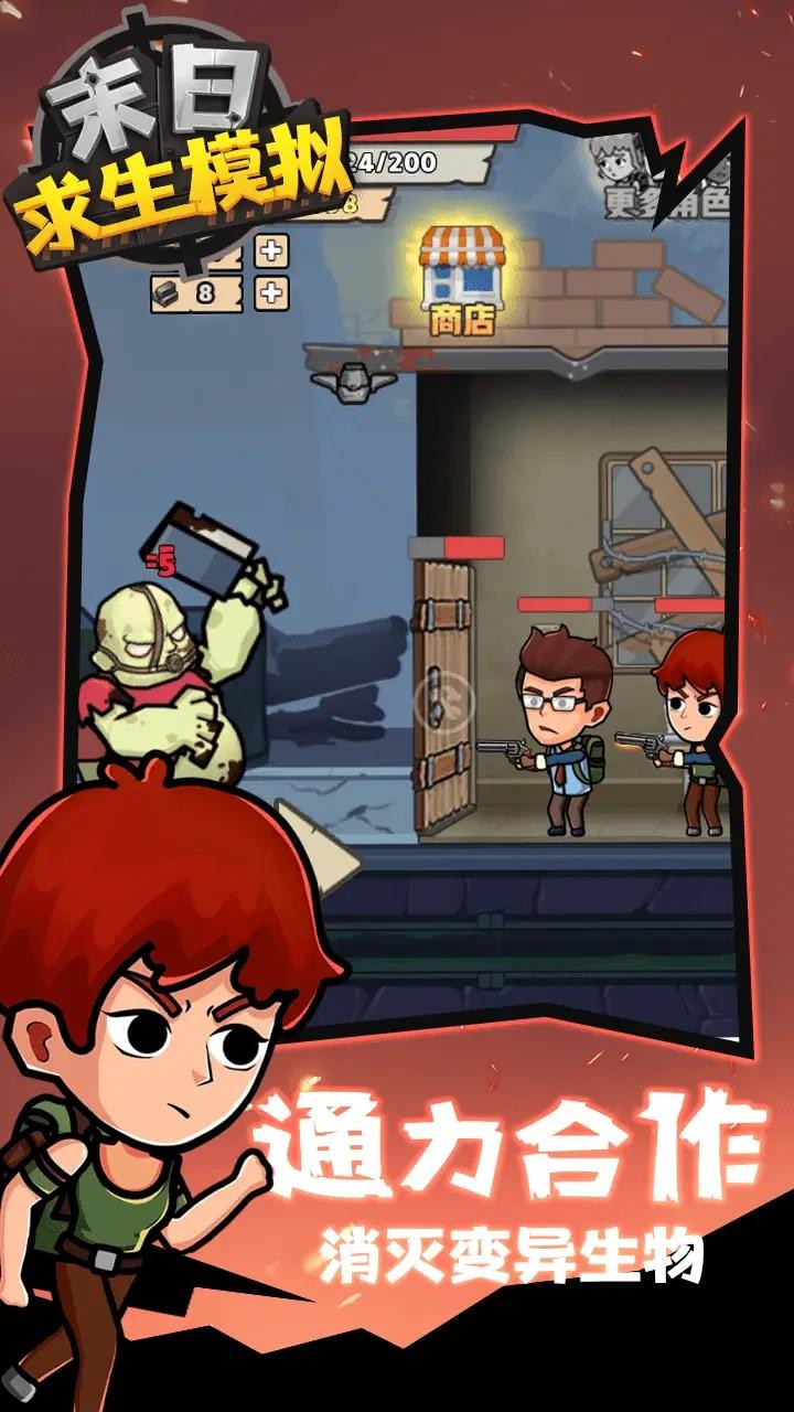 1、末日求生模拟是一款Q版卡通的末日世界枪战射击类生存冒险闯关的游戏,可以直接开启多人联机的玩法模式。