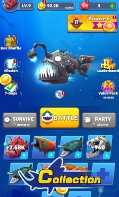 3、这是一款令人兴奋和有趣的游戏,它让你扮演一条小鲨鱼,并逐渐进化成巨鲨。