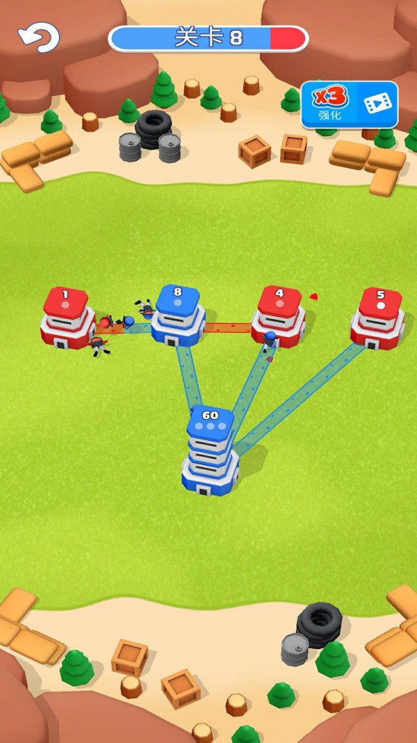 摧毁堡垒是一款非常好玩的手机策略游戏,在这款游戏当中玩家们要占领更多的碉堡来攻击敌人,游戏拥有非常休闲的玩法,只需动动手指调配自己的兵力进行攻击,玩家们能够通过第三人称视角观察战场,非常的好玩,游戏拥有非常多样的关卡挑战,值得下载安装到手机当中。