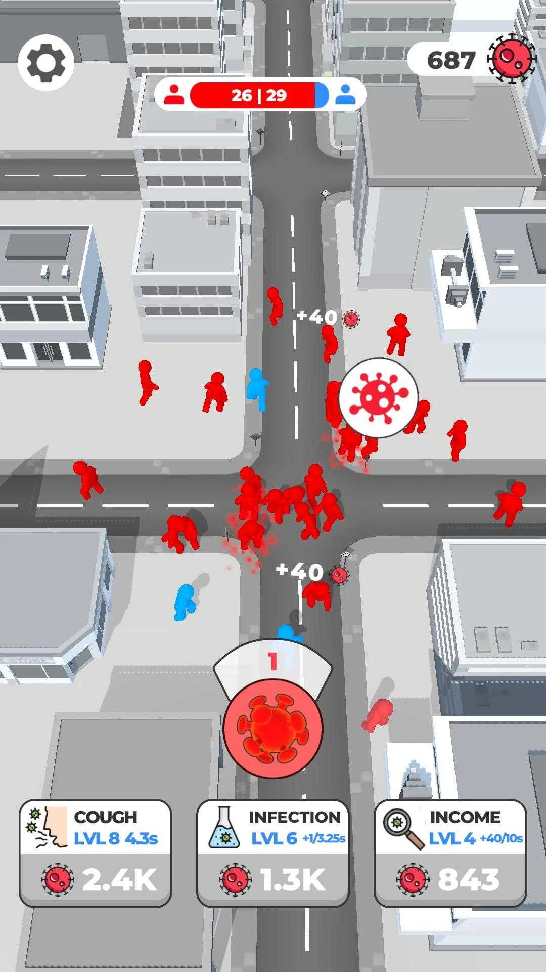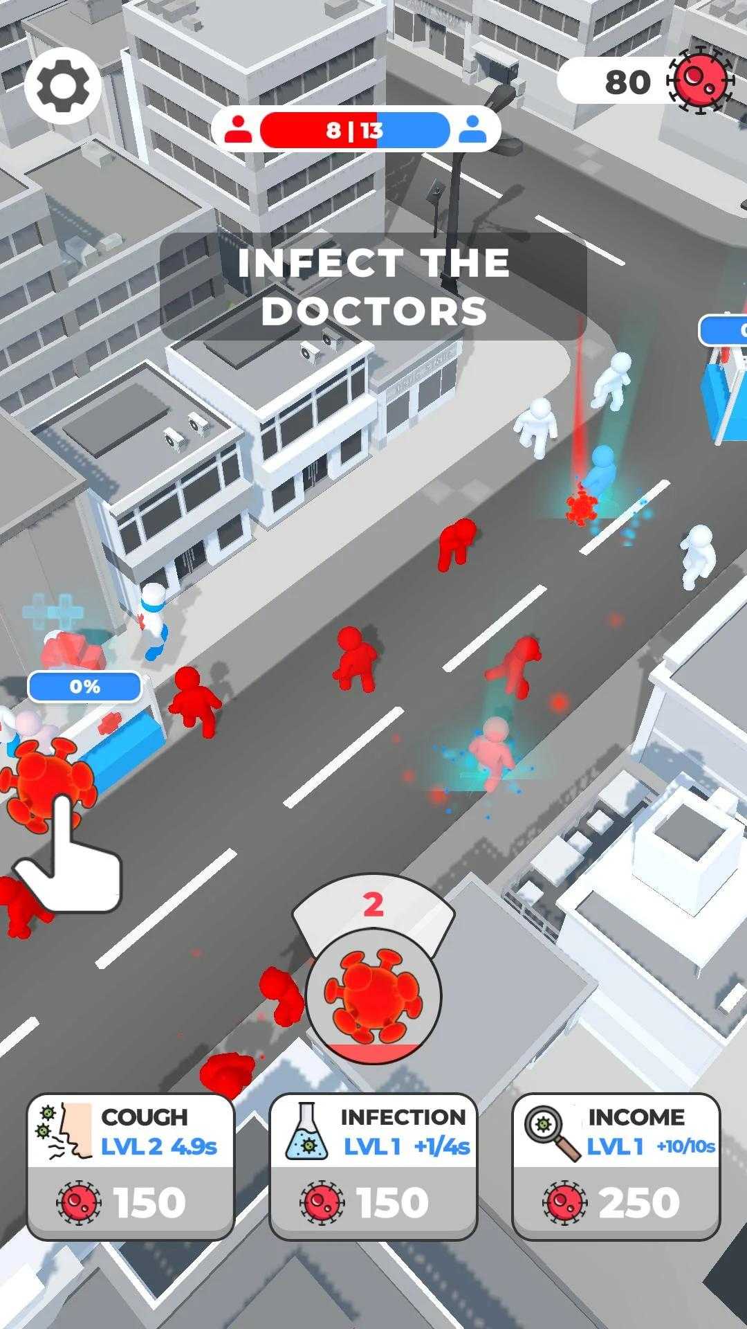 1、一款模拟了瘟疫病毒传播的过程,并围绕这个概念来设计玩法的竖屏放置类点击游戏。