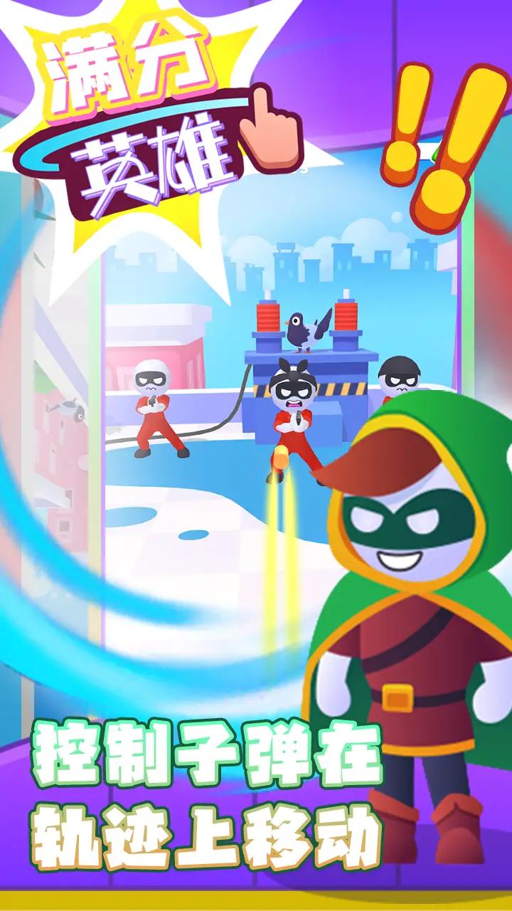 满分英雄游戏是一款能够实现玩家成为超级英雄的梦想,让玩家施展能力捍卫正义的闯关游戏。游戏中,你将化身为一个拥有控制子弹轨迹的超能力的超级英雄,用一颗子弹消灭关卡中的全部敌人,获得过关的胜利。想要成功通关,必须掌握好自己的超能力,利用聪明才智快速寻找敌人的弱点,精准发射子弹