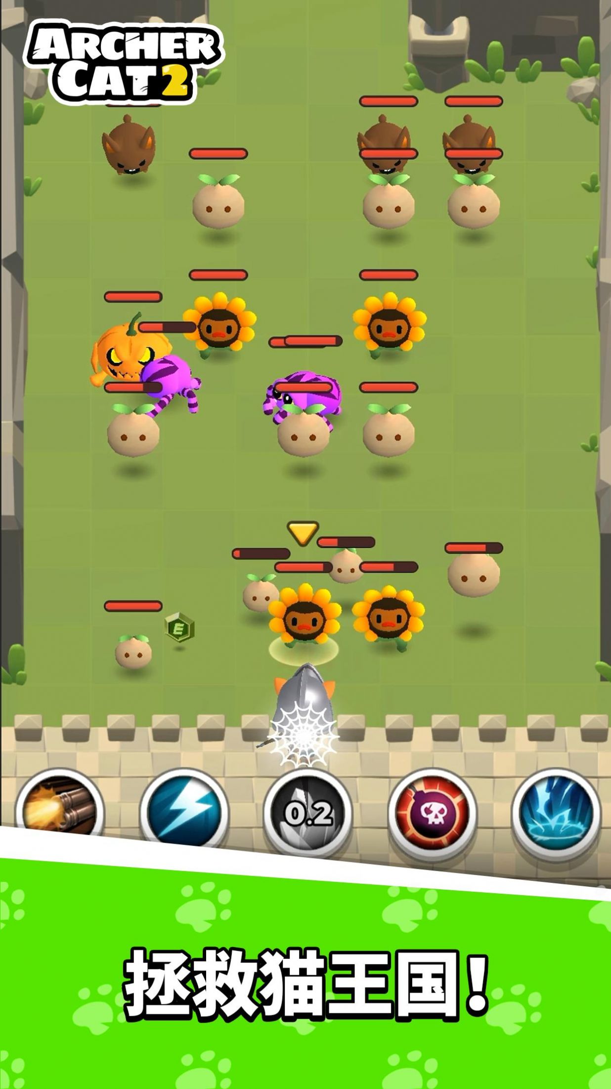 3、玩家将扮演一名猫咪弓箭手,使用弓箭进行射击和战斗。该游戏中充满了猫咪元素。