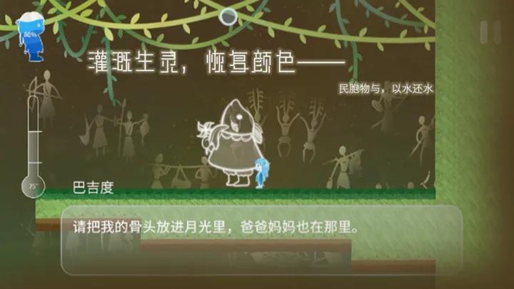 Return Water to Water是一款非常优质的剧情闯关冒险游戏,这款游戏拥有非常多样的游戏关卡环境,场景风格都各有不同特色,与剧情互相呼应,玩家能够在这里体验沉寂式的游戏体验,游戏非常丰富的游戏道具,在这里解锁超多的游戏乐趣,玩家要控制自己的角色进行各种的弹跳闯关挑战,赶快下载吧。