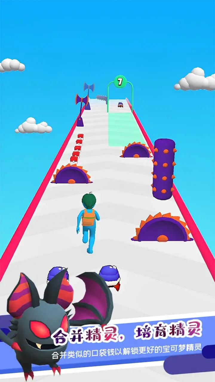 3、我们在跑酷前进的同时还需要小心各种野生精灵的挑战哦。