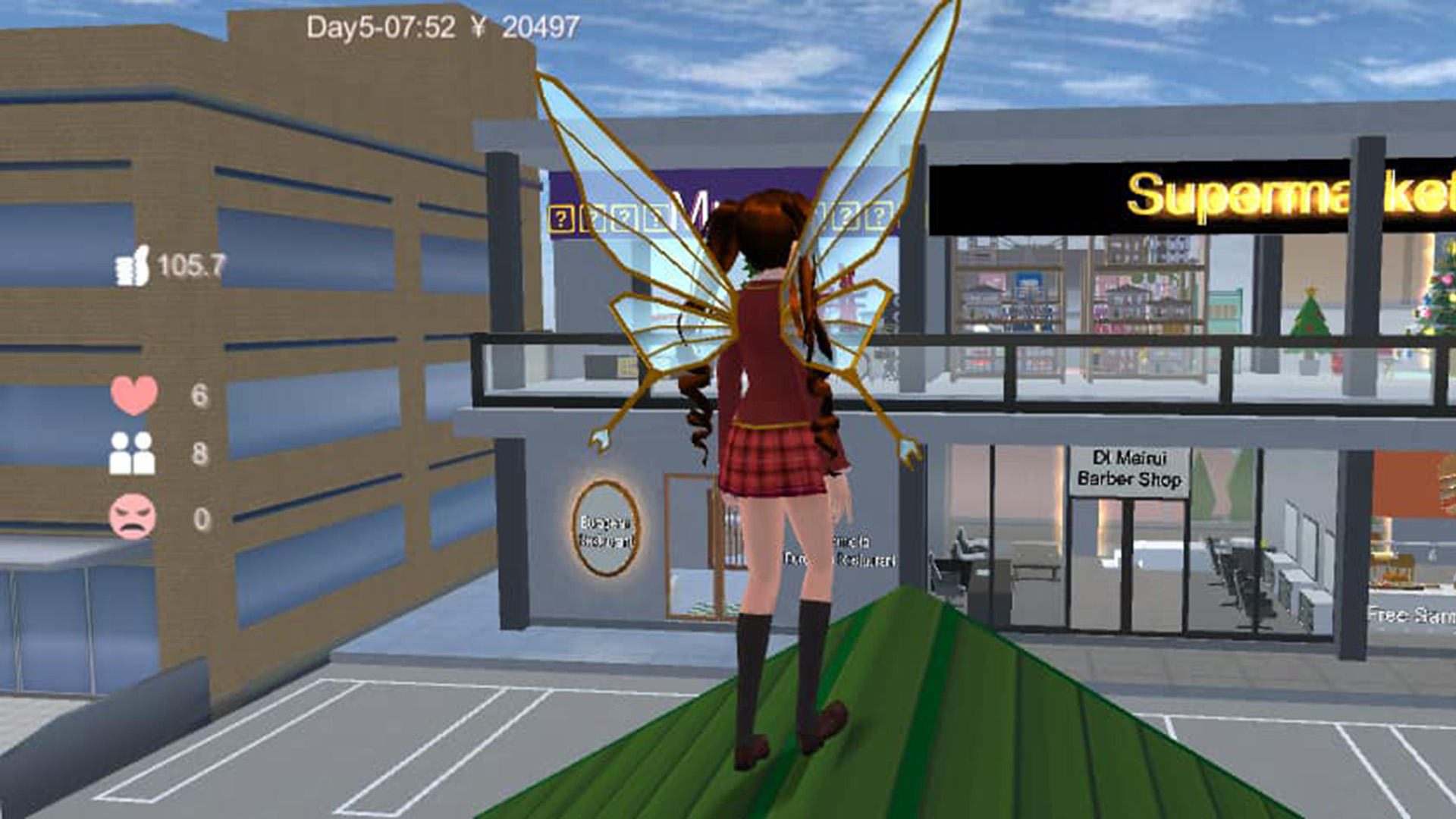 1.广阔的游戏世界拥有各种各样的场景,大部分场景在校园之内,其中有许多道具,汽车服饰和教室内的工具。