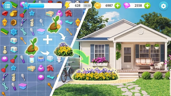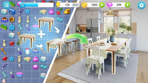 2、通过趣味的挑战为玩家解锁多种不同的装饰道具,想要打造合适的房屋装修造型以及风格。