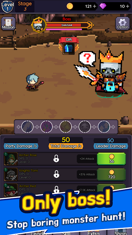1、你将化身像素勇士自由战斗,所有地牢都能直接挑战,使用各种技能快速击杀BOSS。