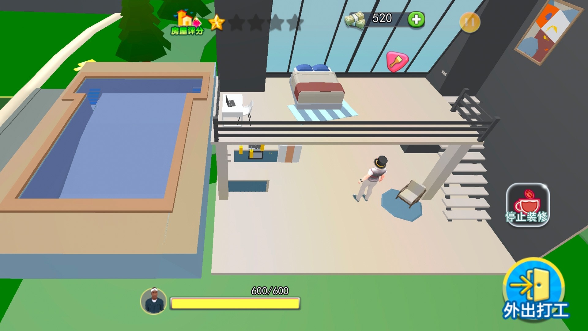 --不断的收集各种的道具来建设自己的房子;