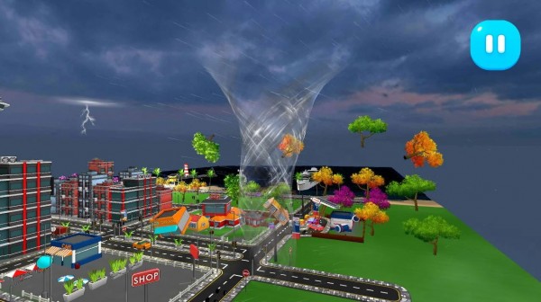 2、让玩家感受龙卷风的强大威力,整个游戏都会以3D城市背景以及更为立体的第三视角。