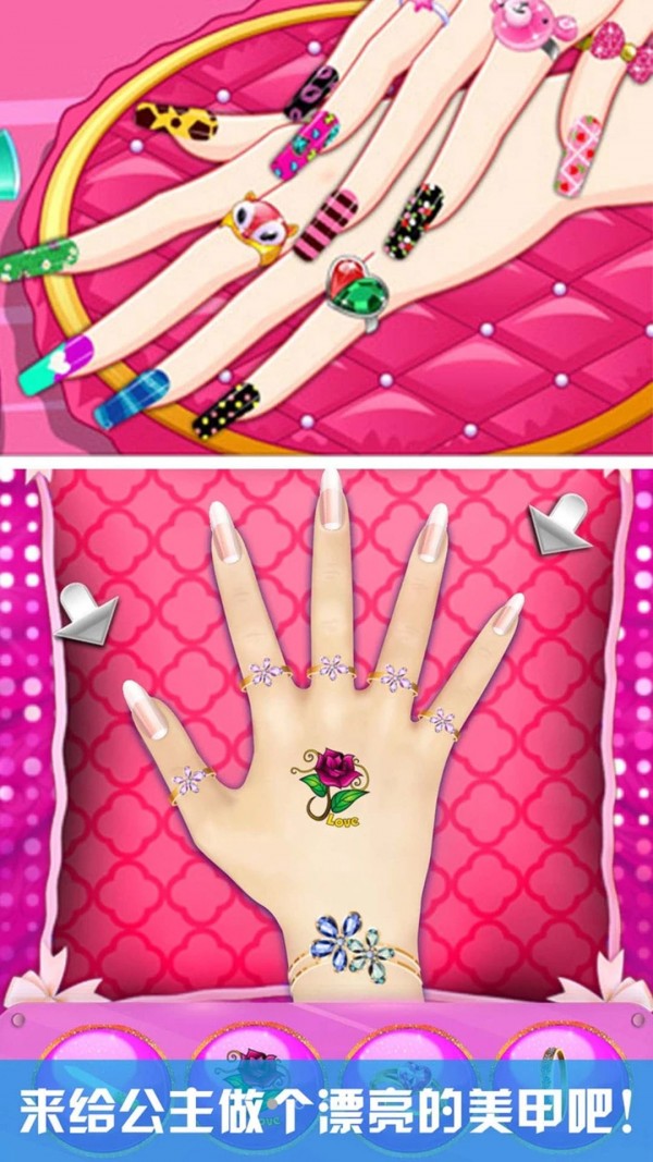 3、在游戏中,玩家需要先给芭比小公主的手指清洁干净,然后涂上一层透明的底漆。