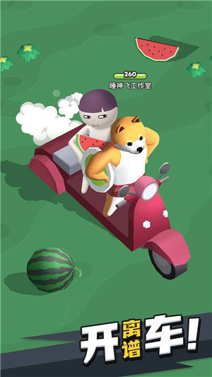 你可以在来不及了快上车驾驶20多种奇奇怪怪的车和别人进行对战能够让玩家笑到合不拢嘴,游戏玩法魔性