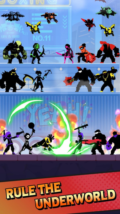 3、通过不断的闯关来解锁更多有着全新能力的火柴人,使用炫酷的格斗技巧进行战斗。