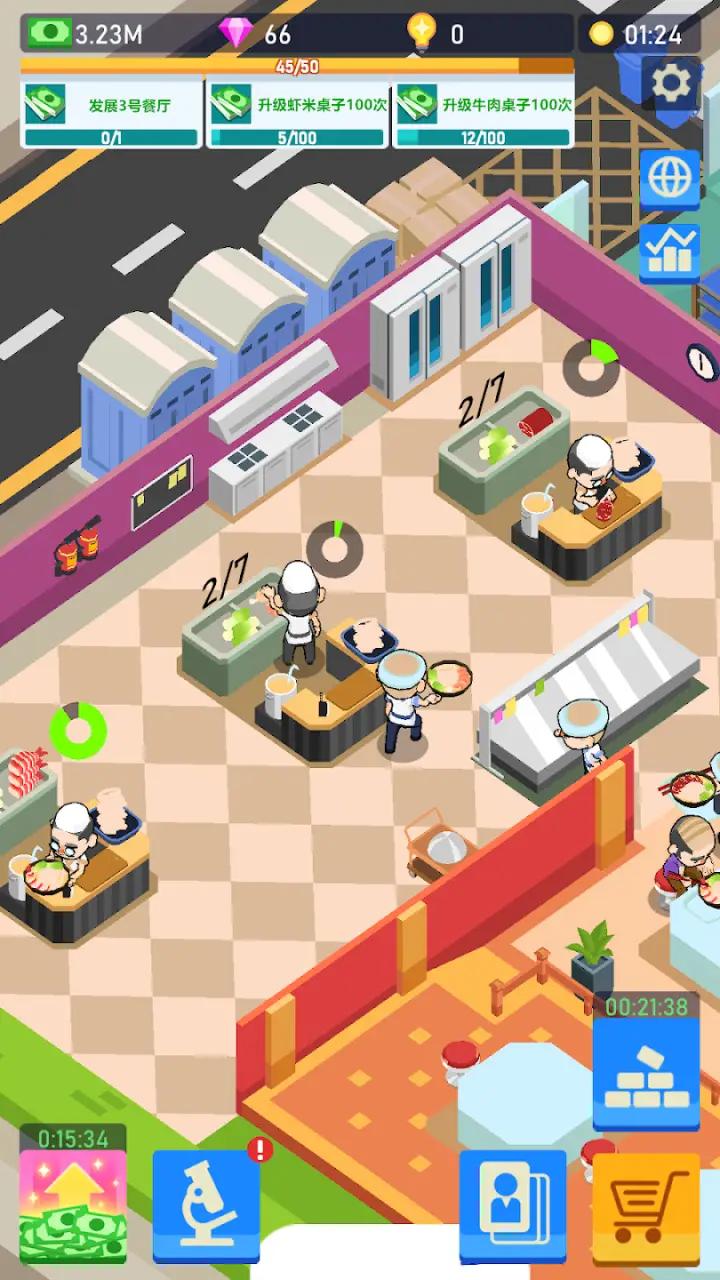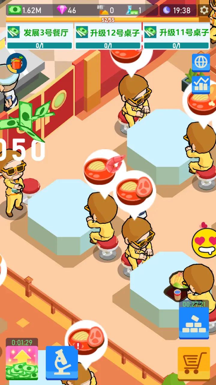 3、不断解锁新的经营挑战,你要在规定时间内吸引足够多的客人,进一步提升面馆的收益。