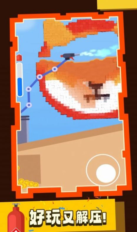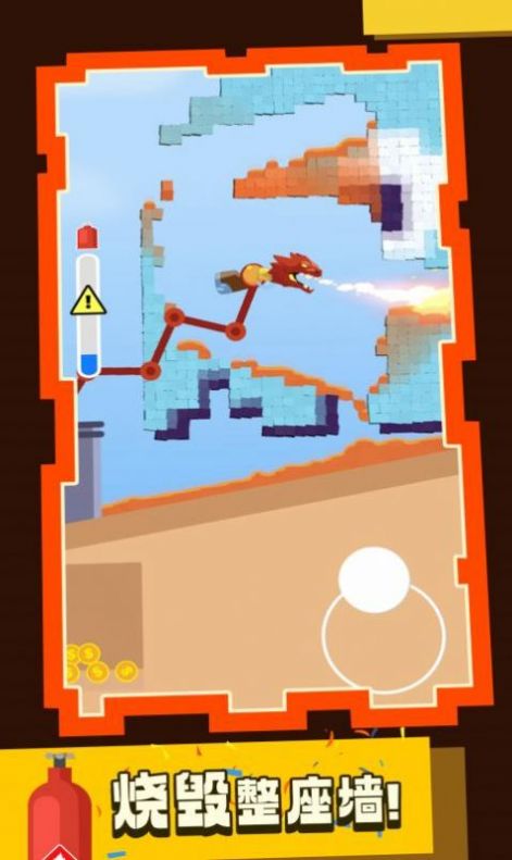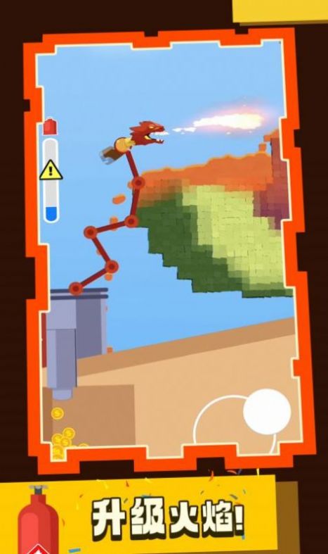 2.创新的火焰喷射消除玩法,将相同颜色的火球喷射到石块上,以消除石块;
