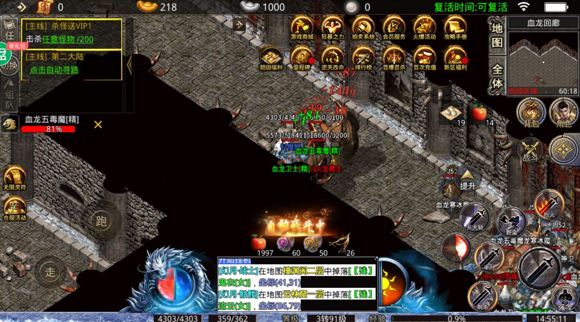 2.这款游戏采用动态战斗系统,每个角色和怪物都有独立的血量和能量值,显示在屏幕上;