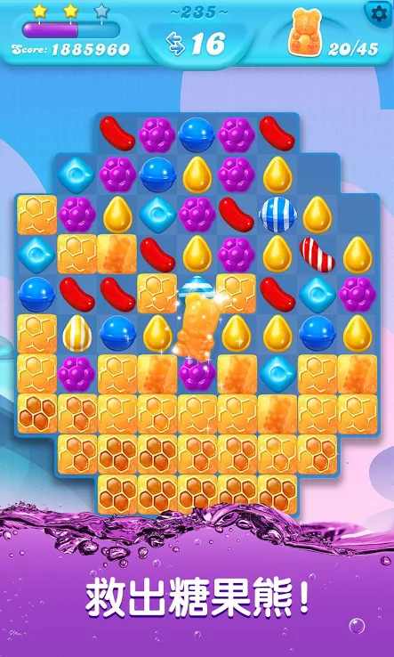 蜂蜜模式:目标是拯救被蜂蜜困住的糖果熊。消除它旁边的蜂蜜,以拯救糖果熊。