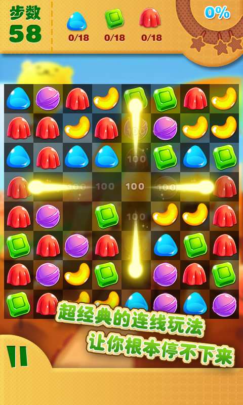 游戏告别传统的对对碰、连连看玩法,采用不同于消灭星星的糖果连线消除模式,