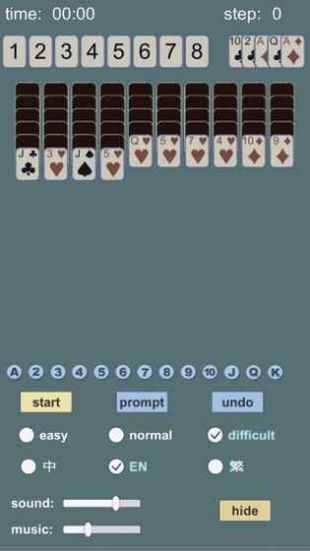 3、首先,新蜘蛛纸牌游戏可以选择多个难度级别,从简单到专家不等。