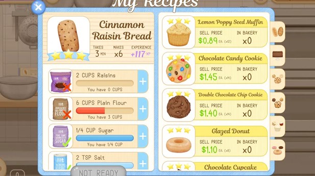 3、顾客的态度和满意度将影响你的店铺评分和商誉。随着商誉的提高,你可以解锁新的食谱和设备。