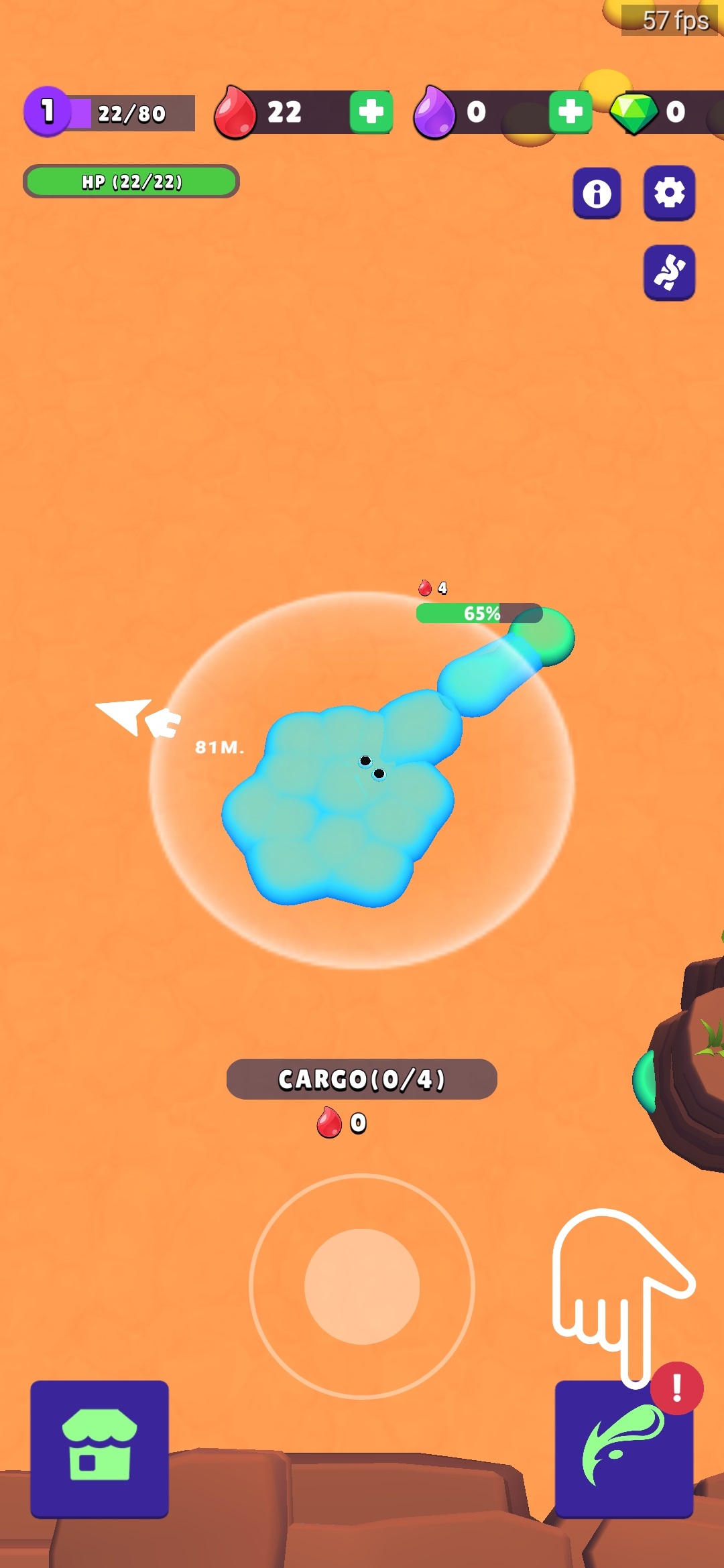 3、操作方式上非常简单,只需要通过虚拟摇杆来控制史莱姆的移动。